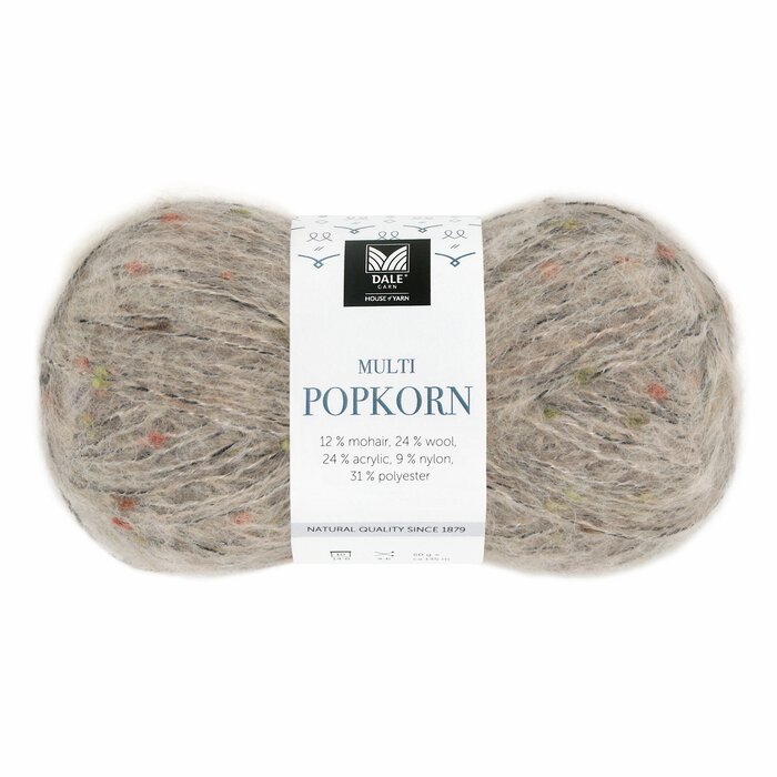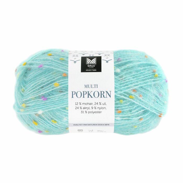 MULTI POPKORN er et allsidig effektgarn med små fargerike knupper i garnet.